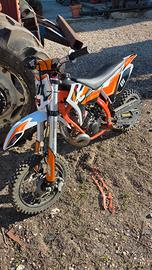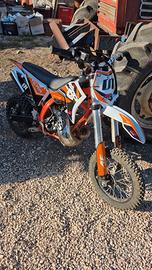 Vendo mini cross 50cc 2T, la moto esdendo una 2T e molto spinta, usata molto poco. Monta gomme nuove e olio appena sostituito, per altre info a disposizione