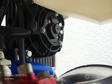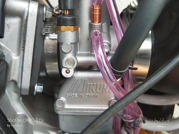 2 tempi, raffreddato a liquido 124,8 cm3 , alesaggio 54mm corsa 54,5mm , carburatore Mikuni Accensione Elettronico + Kick Starter , Frizione Multidisco in bagno d'olio - Cambio comando idraulico 6 rapporti e trasmissione a catena.