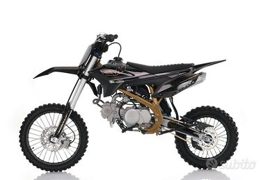 DCR BIKE/MOTO PROPONE VASTA GAMMA DI MONOPATTINO ELETTRICO BICI ELETTRICA QUAD CROSS SCOOTER ELETTRICO E TANTO ANCORA.CI TROVI IN VIA ARGINE 565 NAPOLIPOSSIBILITA' DI FINANZIAMENTI IN SEDE ANCHE SENZA BUSTA PAGA.INFO 08119252558Tipo di motore: 149 cc, frizione manuale (N-1-2-3-4), monocilindrico, W150-5Carburatore: PZ26Raffreddamento ad olioTrasmissione a catena n. 428Accensione: a pedaleVelocità massima: 80 km/hCapacità: serbatoio 3,2 l / plasticaRuote Anteriore: Cerchio in acciaio, 70/100-17"" pneumatico fuoristradaRuota Posteriore: cerchio in acciaio, pneumatico fuoristrada 90/100-14""Forcella anteriore: idraulica non regolabile da 770 mmAmmortizzatore posteriore: idraulico regolabile in estensione 350mmFreno Anteriore: Freno a disco a mano, Freno Posteriore: a disco a piediManubrio: in acciaio ph28mmTelaio: in acciaioForcellone: posteriore AcciaioSilenziatore: in alluminioDimensioniAltezza sedile: 840 mmInterasse: 1220mmCarico massimo: 75 kgG.WN.W. 80 kg/ 93 kgAltezza da terra: 325 mm