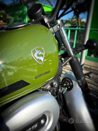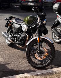 Vendo per passaggio a cilindrata maggiore CYCLONE RA2 125 Verde nuovissima con garanzia 2 anni (fino a settembre 2027 presso RUBEI 2 Roma) Immatricolata nuova a fine settembre, 2060 km, primo tagliando fatto a dicembre. Bollo pagato fino ad agosto. Ottima per principianti che desiderano imparare a guidare la moto con le marce e per appassionati delle cafe racer / custom. Modello vintage con serbatoio verde e sella in pelle marrone. Consuma pochissimo. Bellissima come nuova, mi piange il cuore ma desidero una moto per viaggiare.