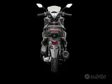 CYCLONE RT1 125 | 11,7 CV | SCOOTER SPORTIVO URBANO (Prezzo escluso immatricolazione e messa su strada) Agile, moderno e tecnologico: il Cyclone RT1 è lo scooter perfetto per la città. Unisce facilità di guida, consumi contenuti e dotazioni avanzate, con un carattere sportivo che lo rende divertente in ogni tragitto. Scooter pensato per chi vuole muoversi in città con stile, sicurezza e tecnologia, senza rinunciare al piacere di guida. Dati principali * Motore: 125 cc 4 tempi, raffreddato a liquido * Potenza: 11,7 CV (8,6 kW) * Coppia: 11,7 Nm * Alimentazione: iniezione elettronica * Normativa: Euro 5+ * Cambio: automatico CVT * Peso: 132 kg * Serbatoio: 9 litri Ciclistica * Telaio doppia culla in acciaio * Forcella anteriore con steli da 33 mm * Ammortizzatore posteriore regolabile * Freni a disco ant. 270 mm / post. 218 mm * ABS su entrambe le ruote * Ruote: 14" Dotazioni e tecnologia * ABS a doppio canale * TCS (controllo di trazione) * Display digitale LCD a colori * Sistema Keyless * Start & Stop * Avviamento Silent Start * Illuminazione Full LED * Telecamera anteriore HD 1080P (DashCam integrata) * Spazio sottosella per casco jet Comfort e utilizzo * Altezza sella: 795 mm * Interasse: 1337 mm * Ottimo equilibrio tra stabilità e maneggevolezza * Ideale per traffico urbano e spostamenti quotidiani Manutenzione * Primo tagliando a 1.000 km * Successivi ogni 5.000 km SERVIZI CONCESSIONARIA * Possibilità di finanziamento * Valutazione permuta * Assistenza e manutenzione * Consegna disponibile Nord Car Sassari