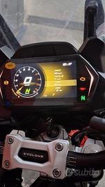 La Cyclone RX650 è una crossover polivalente, perfetta per l'uso quotidiano, le gite fuori porta e i viaggi. Offre comfort, affidabilità ed una versatilità senza pari. Dotata di un motore bicilindrico di 650cc sviluppato con la collaborazione tecnica di Norton/Ricardo ed in grado di erogare 71CV e 62NM di coppia con frizione antisaltellamento. La sicurezza ed il controllo sono di serie: ABS Bosch, impiato frenante J.JUAN con pinze radiali su dischi a margherita, sospensioni completamente regolabili KYB. Comandi retroilluminati, fari Full LED, display TFT da 6,75'' personalizzabile e predisposto per Mirror Link e Navigazione completano la dotazione tecnologica di bordo. Pronta per affrontare qualsiasi tipo di sfida: dal commuting urbano al divertimento nelle strade di montagna, la RX650 si trova sempre a suo agio. Con un serbatoio da 21lt è inoltre pronta ad allungare gli orizzonti dei tuoi viaggi garantendoti quasi 400km di autonomia.