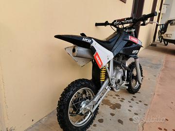 Motore 50 4t che sviluppa una potenza di 4,5 cv a 8500rpm. ,ruote da 10 ,monomarcia con frizione a bagno d'olio che la rende ideale per bambini da 5 anni in su.