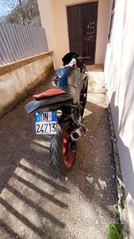 La moto è in ottime condizioni ha solo 30 mila km gomme nuove tutte e 2 carburatore pulitissimo frizione nuova motore originale velocità massima 120 marmitta arrow la vendo perché l'ho usata per fare giusto pratica solo 3 mesi e gli ho fatto 30 mila km per passare direttamente alla cilindrata 1000. Vi assicuro che la moto sta benissimo è freschissima la frizione ancora slitta per quanto è nuova infatti la vendo a malincuore ma mi serve una moto superiore di cilindrata qualsiasi problema chiamatemi il numero c'è.