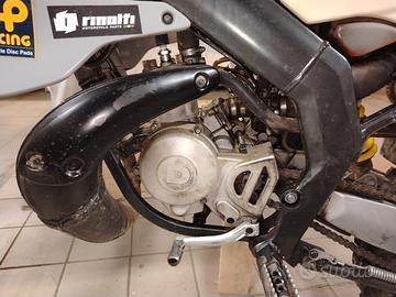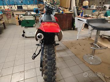 la moto presenta piccole modifiche artigianali fatte dal sottoscritto come per esempio l' ingrandimento della leva del freno posteriore, l' impianto elittrico, aggiunta di grip sulla pedana d' accensione e il tieni cavalletto;ho tolto il blocchetto chiave,il contachilometri, le frecce, il porta targa, la batteria e ho sostituito la mascherina, le leve, mettendole antirottura, le manopole, e ho aggiunto un impianto di spegnimento a bottone.