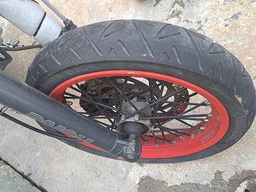 Come in foto, non si accende per via della batteria scarica e probabilmente il motorino d'avviamento non va, marmitta non di serie, ma comunque omologata, vendo intera, chiavi smarrite, dunque vendo per chi ha bisogno di pezzi di ricambio, blocco intero