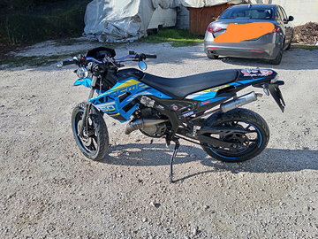 Moto in ottime condizioni estetiche e di ciclistica e revisione/manutenzione fatta ogni 2000 km, unico e minimo difetto è il parafango anteriore(difetto di estetica). La moto monta uno scarico malossi completo e omologato(Dispongo anche di quello originale) e poi ha: frecce, manopole, scarico, adesivi, specchietti, tappi gomme e rapporti in allungo(come altre modifiche).