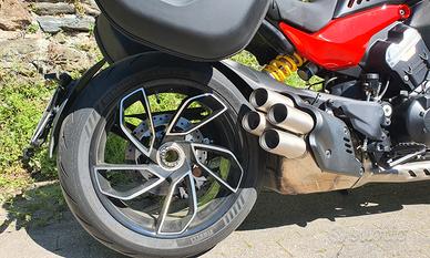 Abbasso a 18.500. La voglia di V4 è incrementata, quindi son costretto a fare spazio per la nuova sportiva che arriverà. Ducati Diavel V4 Immatricolata Aprile 2023, sono il secondo proprietario, la acquistai in Ducati Genova con soli 300km, l'anno scorso. Km totali percorsi 5102 Collaudata e Gommata. Le borse laterali allargabili e comodamente smontabili con la sua chiave di sicurezza (che comprende anche lo schienalino passeggero) sono Ducati. Manopole riscaldabili Ducati. Puoi collegare lo smartphone alla moto e poter utilizzare il navigatore sul cruscotto della moto. Acquistato piccolo (ma geniale ed utilissimo) parabrezza. Acquistato anello serbatoio della sw-motech per agganciare una borsa da serbatoio. Richiesta 19.000 euro Tutte le parti originali sono disponibili e verranno consegnate all'acquirente. La moto è sempre stata posteggiata nel mio garage, sui suoi cavalletti, zero segni di usura o ammaccature o strisciate. Invio altre dettagliate foto su richiesta. La moto è a Celle Ligure, SV. prezzo trattabile, previa chiacchierata o presa visione. Non trattabile per Malefucati o commercianti
