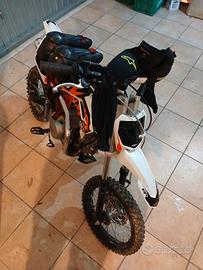 Vendo mini pit cross 110cc 4T usata pochissimo a 4 marce senza frizione, gomme in ottimo stato ancora con i peletti(vedi foto), un vero rombo accattivante di una 4 tempi l'ho sentirai subito ha una spinta e ripresa incredibile è adatta al puro divertimento fuori strada per giovani selvaggi, il prezzo comprende insieme una pettorina nuova dell' Alpinestar taglia da ragazzo+ coppia di ginocchiere, tutto a 1000?.