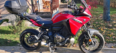 Moto appena gommata davanti.3 giorni fa 40 km in tutto dietro e'al 70% monta cupolino alto firmato Tracer ho pure il cupolino.piccolo estivo si puo'regolare a mano anche in movimento.Con cavalletto centrale piu portatarga sportivo faretti aggiuntivi davanti bauletto da 52 litri.originale yamaha freccie con cicalino sonoro .Non scambio con nulla .No concessionari .Non e' trattabile .