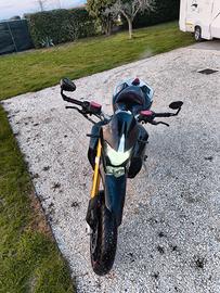Vendo Aprilia Dorsoduro 750, super motard ottime condizioni, depotenziata a libretto 25kw, pertanto guidabile con patente A2 a 18 anni, moto sempre curata e mantenuta con attenzione. Attualmente ha 52.000 km. La moto monta luci a LED, resistenze per le frecce a LED per evitare anomalie, gomme con soli 1000km, batteria con circa 6 mesi di vita, porta targa corto, sella confort SR sellerie, specchietti su manubrio, scarico MIVV, oblò frizione trasparente e paerticolari in ergal, attacco rapido serbatoio per borsa givi (ricavato dal pieno), cedo anche borse laterali montabili senza inutili supporti brutti da vedere, copia di cavalletti alzamoto e parti originali. Prima di venderla eseguirò i seguenti lavori: tagliando completo con pulizia corpi farfallati, manopole, sostituzione kit paraolio e olio forcelle, trasmissione completa pignone catena e corona, così da avere una moto pronta all uso. Vendo a malincuore per mancanza di tempo per usala e mi dà fastidio vederla ferma...