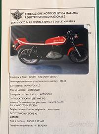 vendo ducati sport desmo , versione con serbatoio e codino in vetroresina, il primo bicilindrico parallelo desmodromico di ducati solo 11400km originali, iscritto al registro storico fmi, necessita solo della batteria nuova, in mio possesso dal 2014 e tenuto in negozio come "oggetto di culto", posso inviare video con moto accesa, la vendo per problemi di spazio in quanto il figlio e' cresciuto ed anche le sue moto.