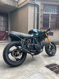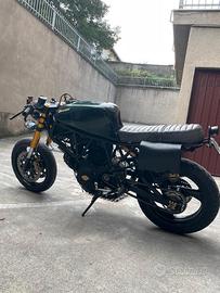 Ducat 600 Supersport del 1995 con targa e documenti originali, convertita a Cafe Racer con verniciatura verde e oro, eliminazione carena e con sella in pelle custom made.
