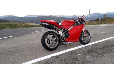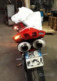 748 del 2002 biposto, libretti Uso & Manutenzione, Garanzia, Tagliandi e Concessionari del mondo disponibili assieme alle doppie chiavi e la piastrina col codice per i duplicati. La moto veste un kit carene in VTR con codone monoposto Mv F4, sella originale Ducati rivestita in alcantara e frecce LighTech integrate negli sfoghi aria; cupolino Febur SBK fumè e specchi in tinta. Le carene originali sono state smontate nel 2006, lucidate e riposte in scatoloni con materiale antiurto. Nel 2020 il motore originale a 50.000Km, è stato smontato ed imbancalato e sostituito da un 996 del 2000 con 21000Km(seguito da meccanico del Team Barni) associato ad un corpo farfallato a 4 iniettori e eprom specifica 996 sull' impianto elettrico originale. Lo scarico Termignoni è completo dai collettori con finali in carbonio e Db Killer estraibili realizzati a mano. Il lavoro è stato eseguito da nota officina specializzata di zona con messa a punto al banco per circa 125CV. Doppia serie di sganci rapidi originali Ducati, connettore rapido per mantenitore ctek e tante altre piccole chicce incluse. A causa di sopraggiunta paternità ci ho percorso solo 800km quindi vendo per inutilizzo. Regalo altra carena VTR stradale di cortesia livrea Superbike 2002 “Bayliss” con plexiglass alto, sella e attacchi montati. OGNO INTERVENTO è TOTALMENTE REVERSIBILE e TUTTO IL MATERIALE ORIGINALE (dalle frecce tipo Malaguti Fifty, specchietti neri, viti delle carene, scarico, pedane passeggero… motore compreso) è DISPONIBILE E SEGUE OBBLIGATORIAMENTE LA MOTO. Il 15/11/2025 sono state sostituite le cinghie e i cuscinetti della distribuzione ed effettuato il cambio olio, filtro olio e filtri aria. Bollo 2026 pagato. €8.000 (Trattabili dopo visione) NO PERMUTE