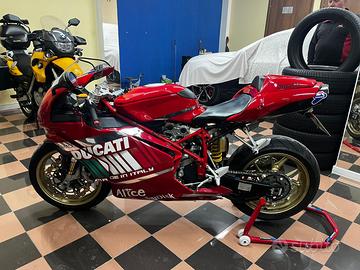 la moto è stata appena portata in ducati per il desmo service completo e altri lavori di manutenzione. tutti gli interventi sono documentati con fatture, disponibili privatamente. sia il motore che il desmo service hanno copertura di garanzia. accessori: kit termignoni completo con centralina dedicata Triple chiavi forcellone scatolato forcella ducati 999 base motore: la moto monta un motore della S con circa 10.000 km, dove ovviamente il desmo é stato effettuato su questo motore. il quadro della moto segna 24.000 km. incluso nella vendita anche il motore originale. la moto è pronta all’uso e non necessita di interventi. vendo per passaggio a moto di segmento diverso. per informazioni o foto contattatemi privatamente. prezzo trattabile in visione.