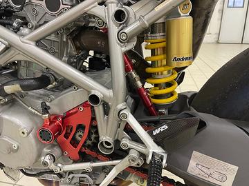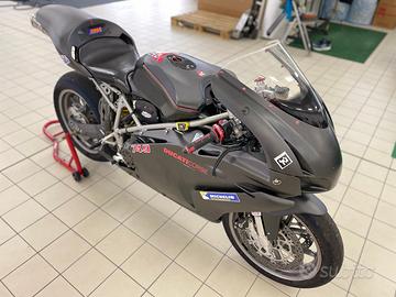 Vendo Ducati 749 del 2004 in DOPPIO ALLESTIMENTO km 21.900, chiedo gentilmente di leggere bene l'annuncio onde evitare domande su cose già scritte, attualmente è in configurazione da pista ma fornisco anche le carene stradali ed altro materiale, vedi foto (sono originali e presentano i normali segni di uso del tempo , la sinistra presenta una rottura nella parte inferiore vicino al cavalletto, il serbatoio è stato riverniciato con un nero che si abbina alle carene pista), vendo esclusivamente per problemi fisici, moto usata 5 volte in pista da amatore (mai caduto in pista), la moto monta : gas rapido+corona posteriore anodizzata+revisione mono+pinze freno anteriori discacciati+asta regolabile posteriore racing+bobine candele nuove (1 uscita), gomma posteriore+pompa freno anteriore brembo radiale+catena racing-corona-pignone (3 uscite), revisione cinghie + candele + regolazione valvole + batteria litio + comando frizione maggiorato 3/23 (5 uscite), telaietto anteriore light, scarico completo + db killer + mappa banco dedicata + filtri sportivi + volano alleggerito, carene sgancio rapido, alcuni particolari in carbonio ed ergal, manutenzione da noto specialista Ducati, preciso che il prezzo è già di realizzo quindi è POCO trattabile, astenersi affaristi al ribasso perchè non ho necessità di svendere la moto, NON VENDO A PEZZI, NON SPEDISCO, NON SCAMBIO, NON CONSEGNO IN ZONA, se qualcuno vuole riportarla in strada il montaggio dei pezzi e la revisione è a suo carico, la moto è targata. (passaggio a carico acquirente ) Pagamento in contanti