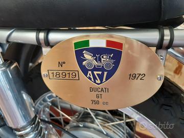 Ducati 750 GT,immatricolata 05/1972,colore giallo oro metalflake. moto completamente restaurata,300 km dal restauro. modifiche motore ,cam pistoni,bielle e carburatori Dell’Orto come modello Sport. accensione 180w. si forniscono parti motore originali e carburatori Amal. moto iscritta Asi. possibilita’ di spedizione possibilita’ di finanziamento MOTO VISIBILE SU APPUNTAMENTO