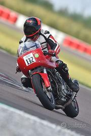 CAFE RACE VIENE CONSEGNATA IN VERSIONE PRONTA PISTA IN PERFETTE CONDIZIONI GOMME SLICK PIRELLI PRATICAMENTE NUOVE E SOSPENSIONI RECENTEMENTE RIFATTE -CON 2 PIGNONI E ALZAMOTO -TUTTO IN PERFETTE CONDIZIONI COME DA FOTO ALLEGATE-MOTORE CV 65-RETTILINEO CREMONA 207 Km/H.MAI GAREGGIATO ESCUSIVAMENTE PROVE LIBERE-