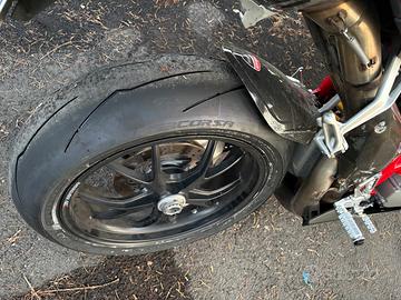 Ducati 848 anno 2008 con 28.000 km. Accessori: - pedane arretrate - terminali Termignoni - mantenitore di carica - parafango posteriore e paratacchi in carbonio - Terminali originali inclusi. La moto è stata appena tagliandata presso Ducati e, contestualmente, è stata appena gommata con pneumatici Pirelli Supercorsa. Dal tagliando risultano eseguiti, tra gli altri: - controllo gioco valvole - sostituzione cinghie distribuzione - candele - filtro olio, filtro carburante, pulizia filtro aria, - sostituzione liquido freni/frizione e liquido refrigerante - batteria - collettori di aspirazione - tensionamento e lubrificazione catena