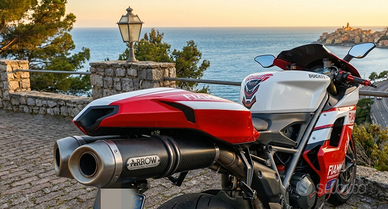Ducati 848 anno 2008, tenuta maniacalmente, tagliandi sempre effettuati regolarmente e sempre tenuta in garage, scadenza revisione 08/2027, motore 849,4 cc, peso 168kg, 134 cv, 98,5 KW, 96 Nm, 4 tempi, bicilindrico, km circa 25000, sospensioni anteriori Showa regolabili e posteriore regolabile, sostituiti olio motore, filtri, olio frizione e freni, grafica carene MotoGP Carlos Checa, senza alcun graffio, sostituita batteria (YUASA) e cinghie distribuzione con originali DUCATI, doppio terminale Arrow in carbonio, portatarga LighTech, frecce Led, gruppo ottico posteriore fanale a Led, doppia chiave di accensione, unghia posteriore e sella passeggero, pedaline posteriori, gomme Dunlop Sportmax TT 80/90%, leve regolabili, libretti Ducati, Cover copri frizione in carbonio, Cover copri pompa acqua in carbonio, ricambi originali cupolino, frecce, leve, scarichi e portatarga, prezzo 6.000 euro NO PERDITEMPO NO PERMUTE.