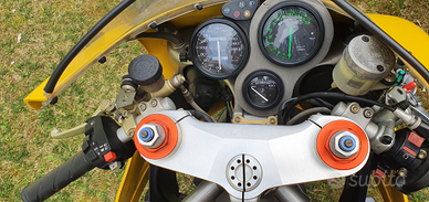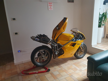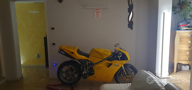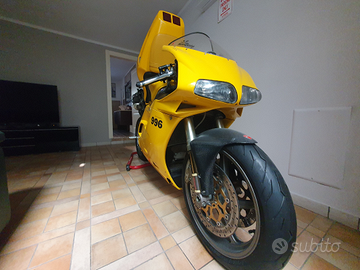 Vendo Ducati 996 biposto gialla originale del 2001 con 38000 km, sono il terzo proprietario. Moto tagliandata con cinghie. In perfette condizioni pos.targa oro storica. Accessori extra, scarichi non omologati con collettori, centralina,paranghi e puntale in carboni . Mai stata in pista e sempre tenuta in casa. Moto da amatori. Prezzo non trattabile.