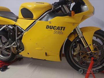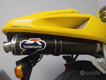 Vendo ducati 998 S iscritto A.S.I. con kit Termignoni Ducati ( scarico e centralina dedicata) , unghia monoposto e biposto doppio parafango carbonio e giallo, doppia bolla, centralina originale e scarichi originali iniseme a carter e paracalore in carbonio e originali.
