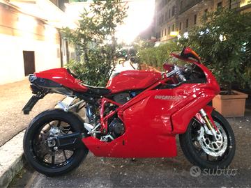 Ducati 999 seconda serie coppa bassa, tenuta da amatore , io sono il 5 proprietario. Moto sempre curata in tutto , mai pista, con scarico termignoni, condotti aria carbonio, copriteste carbonio , parafango carbonio, coprifrizione carbonio tutto ducati performance. Moto trattate nel montaggio dei pezzi e nel CO, e nel cambio batteria da gianfranco e luca lenci..... cedo anche tutti i pezzi originali. desmo service con tagliandone fatto a 20000 km da Gianluca Ducati appia.... Ripeto condizioni perfette no perditempo, permuto solo eventualmente con ducati 996 o 748 seconda serie con carene chiuse ( con termignoni e pezzi originali)o 848 evo max 20000km,solo se la moto e in pari condizioni estetiche e meccaniche della mia, non mi importa dei proprietari ma la voglio non ACCROCCATA. Possibilità iscrizione asi no offerte ridicole per favore