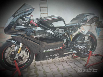 Vendo per scarso utilizzo 999 dark (telaio tutto nero) km 38 300 da poco tagliandata..la moto monta ammortizzatore di sterzo bitubo a gas, semimanubri, pompe accossato racing,contamarce, dischi anteriori a Margherita,tappo serbatoio sgancio rapido, attuatore di frizione, campana frizione alleggerita,pedane arretrate regolabili lightech,cambio elettronico,catena corona e pignone,scarico completo termignoni da 57, pompa freno posteriore serie oro, diverse parti in carbonio come.. cover chiave e protezione serbatoio (portachiavi) protezione zip, copricondotti aria, copri pignone,parafango con copricatena, protezione scarico,copri frizione 2 modelli, copriscarico, porta targa, ecc.. la moto la vedete nelle diverse versioni in quanto le carene montate sono aftermarket le originali con la scritta rossa sono imballate e conservate ho 3 telaietti uno biposto nero che usciva con la moto e 1 rosso, più 1 telaietto rosso monoposto senza pedane posteriori ho 3 diversi codoni come in foto uno biposto con sella 1 unghia monoposto e 1 codone monoposto, tutti i pezzi descritti originali li ho conservati insieme ad un altro kit frizione completo.. la moto è sempre stata tagliandata e tenuta da amatore e come leggete completa di tutti I ricambi e accessori che hanno già il loro valore