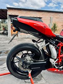 Ducati 999 del 2002 con 30.000km e manutenzione dimostrabile tramite fatture. Questa versione ha il telaio rosso e nero, a differenza di altre versioni che lo hanno grigio. La moto è completamente originale, tranne le seguenti modifiche: - Mono ammortizzatore Ohlins (come la serie S) - Forcellone della versione 2006 ( migliore in estetica e performance ) - Scarico Termignoni dedicato (gran sound) Moto di sicura rivalutazione storica, dato che ha segnato la storia in casa Ducati e nel mondo, per i suoi risultati nelle competizioni in pista e il suo design rivoluzionario.