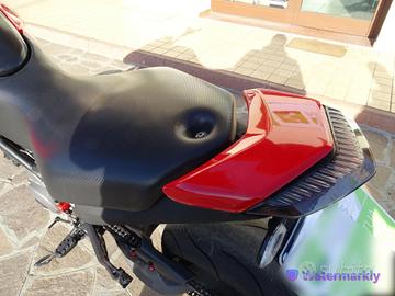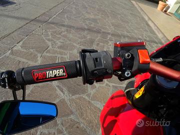 LA MOTO MONTA: - Scarico Termignoni decatalizzato - Centralina performance mappata per lo scarico decatalizzato - Portatarga reclinabile Barracuda - Freno anteriore formato da pompa radiale 19 rcs corsacorta con leva regolabile Brembo, tubi in treccia e doppia pinza Brembo - Faro anteriore a led con angel eye rgb regolabile dal telefono - Frizione antisaltellamento - Manubrio piega bassa
