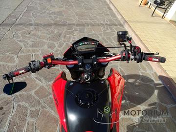 LA MOTO MONTA: - Scarico Termignoni decatalizzato - Centralina performance mappata per lo scarico decatalizzato - Portatarga reclinabile Barracuda - Freno anteriore formato da pompa radiale 19 rcs corsacorta con leva regolabile Brembo, tubi in treccia e doppia pinza Brembo - Faro anteriore a led con angel eye rgb regolabile dal telefono - Frizione antisaltellamento - Manubrio piega bassa