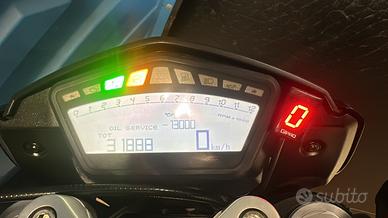 Moto tenuta con cura, sempre in garage, utilizzata solo per tragitti brevi. Estetica sportiva con telaio rosso e mono giallo, display digitale con promemoria service.
