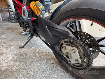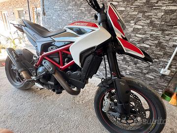 Vendo come da titolo Ducati Hypermotard SP. Moto tenuta benissimo e regolarmente tagliandata ed usata con cura. Moto stupenda che vendo a malincuore per motivi di scarso utilizzo causa lavoro. Versione più estrema con monoammortizzatore ohlins, cerchi in magnesio marchesini, forcelle marzocchi e doppio disco con impianto Brembo. Monta attulmente scarico Hpcorse, portatarga ripieghevole barracuda, frecce a led anteriori e posteriori e specchietti stealth. Ovviamente ho tutti i pezzi originali per chi volesse riportarla a come era in origine Eseguito di recente controllo pastiglie, liquidi e check valvole desmodromiche e cambio catene. Unico difetto è un cavetto del faro che va sistemato e ogni tanto fa lampeggiare le luci di posizione a led.