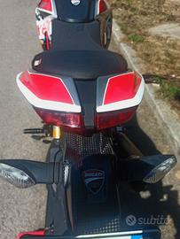 Le immagini si commentano da sole... Hyper superaccessoriata con 50.600 km, tenuta benissimo. Tagliandi previsti e intermedi (olio e filtro olio). Accessori originali: 1. Sella racing Ducati corse; 2. Portatarga Ducati racing in carbonio; 3. Scarico Spark doppia omologazione; 4. Corona Sitta ergal ossido duro (superleggera e più resistente) + 2 denti cambiata da poco con catena e pignone 300 euro; 5. Batteria litio super leggera di eccellenza qualità; 6. Specchietti alleggeriti; 7. Pedane Racing super leggere in alluminio; 8. Mappa Rexxer Cantalupo azienda di Milano; 9. Sprint filter; 10. Copripompa dell'acqua Ducabike; 11. Grafiche racing wrapping, con possibilità di riconfigurazione nei colori originali sottostanti; 12. Tagliando eseguito.06/2025 percorsi 3500 km; Pneumatici al 60%; Bolli in ordine; Revisione eseguita ad aprile; Pezzo davvero unico! Difetti: piccola abrasione lato spigolo carena Dx causa di una banale caduta, corretto bene con ritocco del carrozziere (non si vede praticamente); Pomello leva freno leggermente consumata, ma efficiente. (Non l'ho sostituita perché sarebbe stato inutile); Portatarga Ducati racing, saldato con piastra di rinforzo perché notoriamente si spaccano x le vibrazioni.; 4. Spia motore che dopo un 30 km a volte si accende senza alcun motivo. L'errore sembrava essere sulla sonda lambda cil. posteriore, che ho sostituito senza esito positivo. In Ducati mi han suggerito di tenerla così; ed in effetti ce l'ho cosi da tre anni, senza alcun problema, zero! Per il resto, moto perfetta e ottimamente tenuta. NON scambio con nulla. Solo se interessati, non perditempo. Vendo per passaggio a Ducati Multistrada. Grazie.
