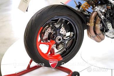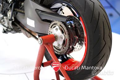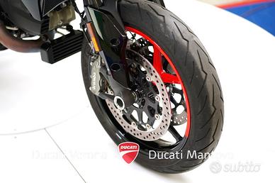 Ducati Verona è Ducati Exclusive Dealer per le province di Verona e Mantova dal 1999. Offriamo solo moto certificate e controllate dettagliatamente, garantendo affidabilità e qualità superiore. Qui ti proponiamo una straordinaria opportunità: Ducati Hypermotard 950 RVE - Luglio 2023, Perfetta, Solo 1.358 km! L'anima racing della motard Ducati in un pacchetto perfetto! Proponiamo una Ducati Hypermotard 950 RVE, immatricolata a luglio 2023, con un chilometraggio incredibilmente basso di soli 1.358 km. La moto è in condizioni perfette, come appena uscita dal concessionario, e ha già eseguito il primo tagliando. La sua livrea RVE, aggressiva e distintiva, ne esalta il carattere da fun-bike per eccellenza. Caratteristiche Tecniche Principali: Modello: Ducati Hypermotard 950 RVE Data Immatricolazione: Luglio 2023 Chilometraggio: 1.358 km Condizioni: Perfetta Motore: Testastretta 11°, bicilindrico a L, 937 cc. Potenza Massima: 84 kW (114 CV) @ 9.000 giri/min. Elettronica: ABS Cornering Bosch, Ducati Traction Control (DTC) EVO, Ducati Wheelie Control (DWC) EVO. Punti di Forza e Dotazione Esclusiva: Chilometraggio Irrisorio: Con solo 1.358 km, è praticamente una moto nuova. Primo Tagliando Eseguito: Un costo e un'incombenza in meno per l'acquirente, la moto è pronta all'uso. Condizioni Impeccabili: Tenuta in maniera maniacale, nessun segno di usura. Livrea Esclusiva: La colorazione RVE la rende unica e accattivante. Possibilità di finanziamento a tasso agevolato. Condizioni di Vendita: Prezzo già scontato (valido solo senza ritiro usato): 13.190 € IVA esposta Prezzo di listino (valido con ritiro usato o per inizio trattativa): 13.690 € IVA esposta Offriamo finanziamenti e permute con moto o OROLOGI di nostro gradimento, e acquistiamo moto con pagamento immediato. Contatti: Ducati Verona - Bosetti Moto Info e prenotazioni: N.B.: La dotazione tecnica e gli accessori possono variare. Verificare l'equipaggiamento