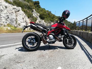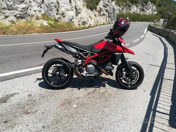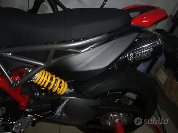 ducati hypermotard 950 2021 con circa 4000 km. Moto sempre tagliandata e mai incidentata. la moto ha un' infinità di accessori che provo ad elencare. accessori in carbonio: terminali di scarico mivv omologati, parafango anteriore, parafango posteriore, copri pignone, copri serbatoio, paramani, fianchetti radiatore, fianchetti terminali di scarico, copri cinghie, blocchetto chiavi, portatarga completo, cupolino. Accessori in ergal: tappo serbatoio a sgancio rapido, perni pedane, specchietti bar end, copri pompa acqua, cappuccetti sfiati olio, para forcelle anteriori, tappo carico olio motore, tappo vaschetta acqua, copriradiatore acqua e olio. inoltre monta frecce posteriori dinamiche lampada faro a led, cambio elettronico up e down, pellicola strumentazione e sicuramente dimentico qualcosa. tutte le parti originali sono disponibili e come nuove. tutti gli accessori sono di primaria marca, ducati performance, cnc racing, rizoma ecc. Come si evince dal chilometraggio vendo la moto esclusivamente per inutilizzo. sono disponibile a qualsiasi prova. la moto è sempre stata in garage su cavalletti e telo copri moto. vendo in configurazione originale a 10000 e accessoriata più parti originali a 11500. per info è gradito contatto wathsapp 3396301723