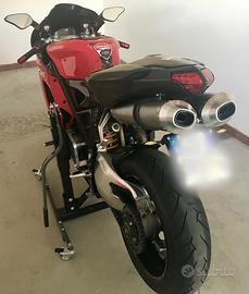 Ducati 848 anno 2007 una della prima serie per la sua presentazione, infatti la vera produzione è iniziata dal 2008 ed è terminata nel 2012 con Evo. Ha 35000 km. 33000 ho fatto cambio cinghie controllo valvole cambiato olio motore e liquidi e pasticche freni e ruote posteriori che anteriori per tempo non per consumo perché faccio pochissimi chilometri, per garantire un valore, tutto ciò è stato fatto tramite officina di moto di cui mi fido e vicino a me. La moto è quasi tutta rivestita in carbonio ". È un buon investimento, per chi conosce la moto. Trattabile ma non scendo sotto i 7000€.
