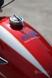 Ducati 350 Scrambler with some modifications, such as the lower handlebar and the Mark 3 side covers.
