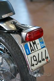 Ducati 350 Scrambler con alcune modifiche, come il manubrio più basso e i fianchetti del Mark 3.