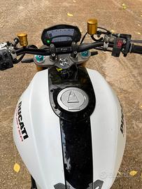Vendo ducati monster 1100s, versione con differenze dal 1100 normale come forcelle olhins a steli rovesciati da 43mm, sospensione posteriore con monoammortizzatore olhins regolabile e parti in carbonio già di serie. Kit termignoni in carbonio (scarichi-centralina-filtro). Aggiunti altri accorgimenti rizoma in oro, portatarga originale ducati, frecce led, manopole barracuda, inserti in vero carbonio oltre quelli già di serie... Adesso ha 51mila km, tagliando completo effettuato a 50 mila e frizione cambiata a 42mila. Gomme al 70%. Vendo completa di pezzi originali (scarichi, centralina, parafango, specchietti...). Vendo a 6000€ poco trattabili, ripeto poco trattabili quindi inutile fare offerte ridicole. Visibile di persona in modo da poterla anche provare. Vendo per inutilizzo, accetto scambi con tmax 530 o smart 451.