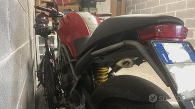 Vendo per inutilizzo ducati monster 400 i.e. iconica naked italiana perfetta per chi cerca la prima moto o per chi desidera un mezzo agile e di carattere per la città. La moto presenta un doppio disco anteriore con pinze brembo serie oro, puntale sottoscocca, carene originali e codino monoposto in carbonio. A libretto porta 32kW guidabile senza depotenziamenti perfetta per patente A2, la moto essendo un due cilindi permette di avere una moto calma e agevole a bassi giri perfetta per la città e per chi vuole imparare. Mentre ad alti giri è più caparbia e grintosa ottima per divertirsi. La moto presenta segni di inutilizzo, va riparato stop e frecce nulla di grave e ha problema eletronico per l'accensione presumo dovuto alla batteria dato che è ferma da molto. La moto non ha subito incidenti e sono il secondo proprietario. Inclusi nel prezzo oltre alla moto ci sono i cavalletti alzamoto e i pezzi in foto. Prezzo 1100€ leggermente trattabile, passaggio di proprietà a carico dell'acquirente.