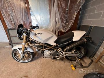 Splendida Ducati M600 del 1997. La moto è ferma da 3 anni e necessita revisione, pulizia carburatore, gomme nuove e cambio batteria. Sempre tenuta al chiuso e con solo 23.000km. Monta scarichi artigianali in carbonio con foglio di omologazione. Dispongo, inoltre, degli scarichi originali. La sella (biposto) ha la classica "unghia" che la rende monoposto grazie ad una semplice vite. Inoltre ho vari accessori e oggetti nuovi per migliorie varie.