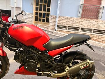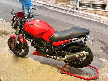 Vendo per passaggio ad altra moto una Ducati monster immatricolata nel 99. La moto è sempre stata tagliandata con regolarità, costudita in garage privato e mantenuta da vero appassionato. La moto presenta vari accorgimenti i più evidenti sono i doppi scarichi Mivv gp in carbonio (omologati). Di recente sono state revisionate cinghie, pastiglie freni e catena. Gommata nuova con Pirelli diablo nuove.