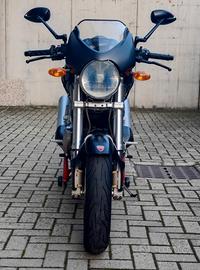Vendo Ducati Monster Dark 620 ie, unico proprietario, accessoriata con cupolino e puntale, paracalore in carbonio, revisione settembre 2024, distribuzione settembre 2024, liquido freni settembre 2024, batteria 2022. Le frecce sono state sostituite con modello originale per deterioramento delle plastiche, Cavalletto posteriore compreso