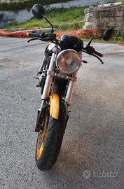 Ducati Monster 620 Dark I.E. La moto, in ottimo stato, ha 53397 km, usata principalmente in ambito cittadino e per fare casa-lavoro. Accessori aggiuntivi: -Manubrio accossato -Bilancieri manubrio anodizzati oro -Tappo olio motore anodizzato oro -Cerchi oro -Grafica personalizzata Black and Gold fatta da KoroDesign -Doppio scarico omologato gpr full carbon -cambio olio (15w50), filtro olio (hiflofiltro 153), fatto il 3 giugno 2024 - frecce posteriori barracuda -portatarga pieghevole biondi adattato per la Monster -gomme Pirelli Diablo Rosso II (anteriore 70%-posteriore 70%) La moto, euro2, risulta immatricolata nel 2002 ma ritargata nel 2012. Passaggio di proprietà a carico dell'acquirente Prezzo poco trattabile.