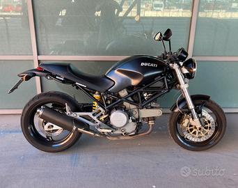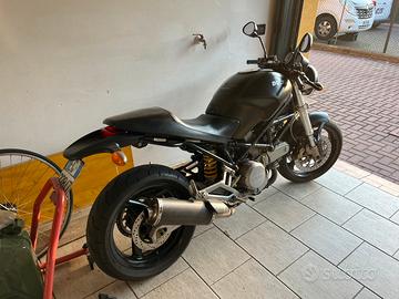 DUCATI Monster 620 i.e. modello Dark con doppio freno a disco anteriore da 320 mm Brembo serie Oro. Bicilindrico desmodromico da 620 cm cubici ad iniezione elettronica. 44kw pari a 63 cv. Immatricolato 2005. Unico proprietario. Compresi tutti i pezzi originali ( sostituito silenziatori - Termignoni in fibra di carbonio- il portatarga e rimosso parafango posteriore e fianchetti). La moto è iscrivibile subito come moto di interesse storico (rata dell'assicurazione ridotta e bollo irrisorio). Viene fornita di tutti i pezzi di ricambio originali.