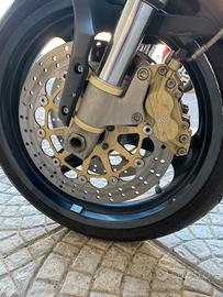 Freno a disco posteriore e doppio freno a disco anteriore con pinze Brembo color oro.Altri dettagli in color oro come pinze freno e porta targa la rendono un pezzo unico. Disponibile anche puntale sotto motore. Batteria nuova, filtro aria nuovo.
