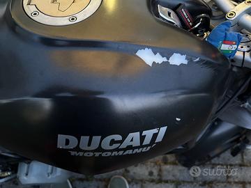 Vendo Ducati Monster 620 i.e. versione Dark del 2004, depotenziata a libretto (25 kw) per guida con patente A2. La moto ha circa 37.000 km ed è in condizioni meccaniche eccellenti: parte subito, gira tonda e non necessita di alcun lavoro. È stata appena tagliandata e monta gomme Pirelli Diablo Rosso III con meno di 2.000 km (praticamente nuove). Segni particolari: A livello estetico presenta dei graffi dovuti a una scivolata quasi da fermo. Ho preferito lasciare la moto originale così com'è poiché il danno è solo visivo e non influisce minimamente sulla guida o sulla sicurezza. Moto affidabile semplice e diretta perfetta anche per avvicinarsi al mondo delle due ruote. Km: 37.000 Gomme: 90% Manutenzione: Appena eseguita Disponibile per vederla e provarla di persona.
