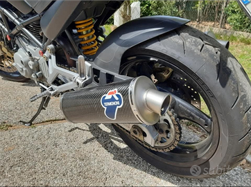 Vendo causa inutilizzo Ducati Monster 620i dark, nero opaco, anno 2004, km 38435, batteria nuova, gomme Pirelli Diablo Rosso II, frecce, fanale e codino modificato. Moto ferma da 1 anno, da fare tagliando e collaudo. Con scarichi originali a euro 2500,00. Con scarichi Termignoni Racing euro 3000,00. Solo scarichi Termignoni Racing euro 700,00. Prezzo trattabile. Primo contatto whatsapp 3396979792 CHIARA.