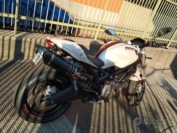 Vendo per passaggio ad altro modello Ducati Monster 696 plus colore bianco perla del 2010 in ottime condizioni, dotata quindi di cupolino e unghia monoposto. Tagliandata a scadenza regolare annua con tutti i controlli previsti da Ducati. Vi elenco le modifiche effettuate più rilevanti: -Coppia di silenziatori SC Project modello Oval carbonio, con certificato di omologazione. -Specchietti ducati Monster 821 originali (non plasticaccia aftermarket) -sella in gel originale Ducati e sella originale bicolor bianca e nera -tamponi para telaio -copripignone in carbonio Carbon House -paracalore in carbonio Carbon House -attacco USB su manubrio -manubrio SRT in Ergal piega media color nero e bilancieri pieni artigianali -coppia frecce Lampa a Led modello Ciclon Nero -tubi frizione e acceleratore in treccia rossi con viti di spurgo -telaietto faro nero -vetro cupolino nero -cavetto collegato alla batteria per mantenitore batteria e relativo mantenitore batteria -attacco serbatoio GIVI BF09 e borsa Givi XS308 Tanklock da 20lt -attacco Smartphone Lampa 90552 OPTI-BRAKE e porta Smartphone -coppia di cavalletti, anteriore e posteriore Parti originali disponibili. Tenuta sempre in garage coperta con telo e su cavalletti durante il non utilizzo. Nota particolare per il pneumatico posteriore, da libretto è possibile montare il 180/55 ZR17 contro il normale 160/60 ZR17 Posso eventualmente valutare permuta (con differenza ovviamente) con Multistrada 1260 o Tracer 9GT con concessionaria